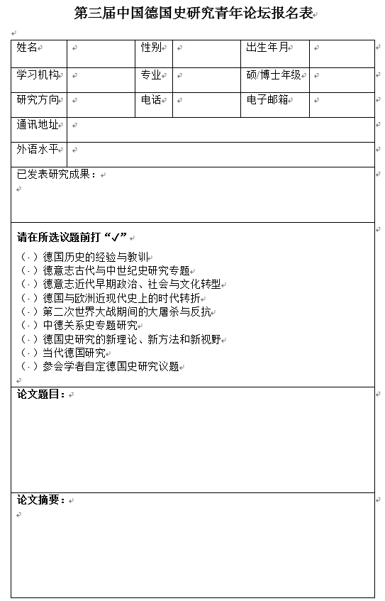 中国德国史研究青年论坛报名表下载:/userfiles/files/1713160641698.docx