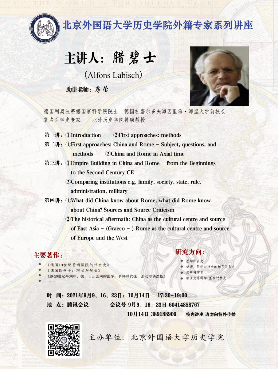讲座专家:腊碧士,德国利奥波蒂娜国家科学院院士、德国杜塞尔多夫海因里希·海涅大学前校长、著名医学史专家、北外星空XK官网特聘教授