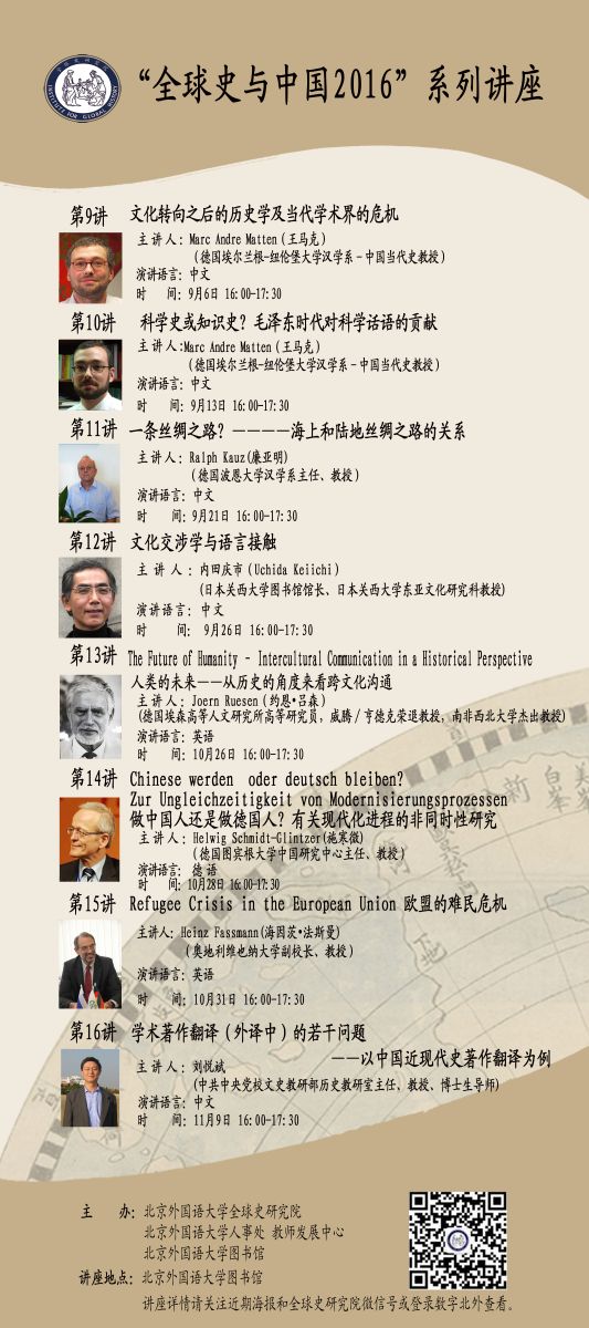 “全球史与中国2016”秋季系列讲座总目