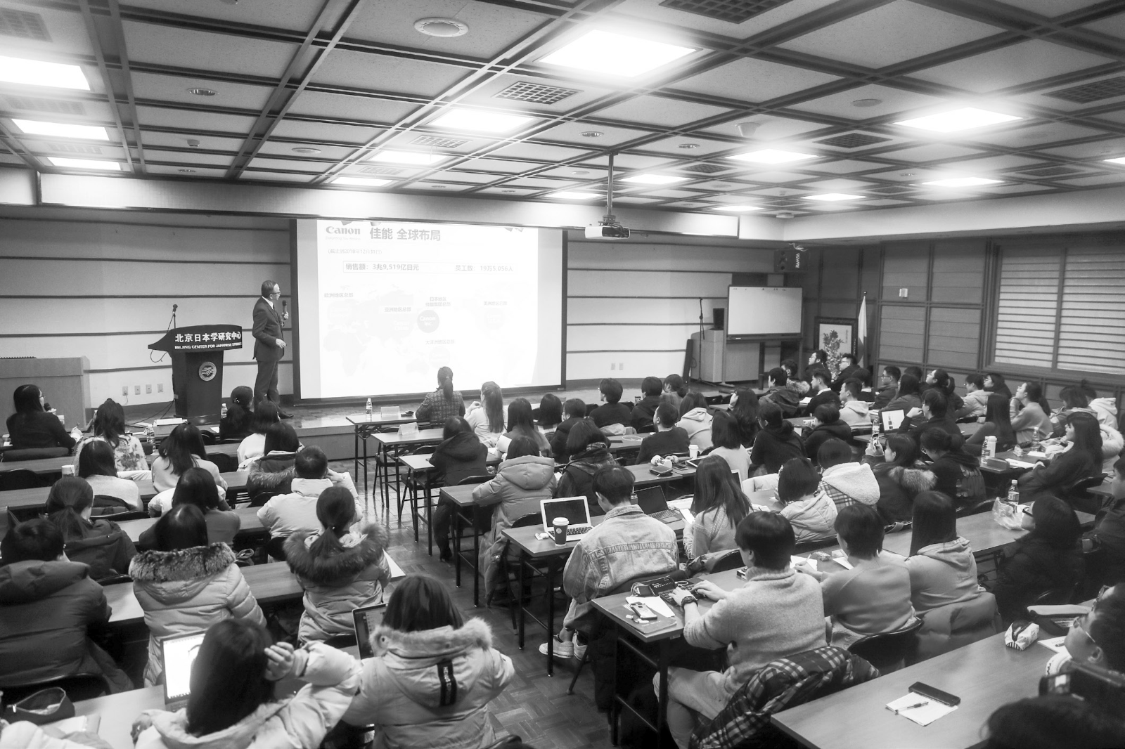 佳能(中国)有限公司董事长小泽秀树为北外学子做讲