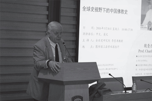 3 月30 日下午,“全球史与中国2016”系列讲座第三讲(总第16 讲)在我校图书馆三层举行。泰国国际佛教大学校长、比利时皇家科学院院士魏查理(Prof. Dr. Charles Willemen)教授用中文以《全球史视野下的中国佛教史》为题做了一场有关佛教的随谈式讲座。讲座由全球史研究院院长李雪涛教授主持。