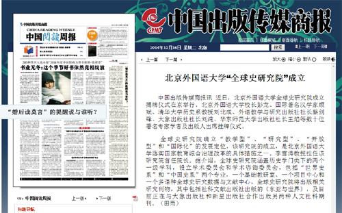 中国出版传媒商报:北京外国语大学“全球史研究院”成立